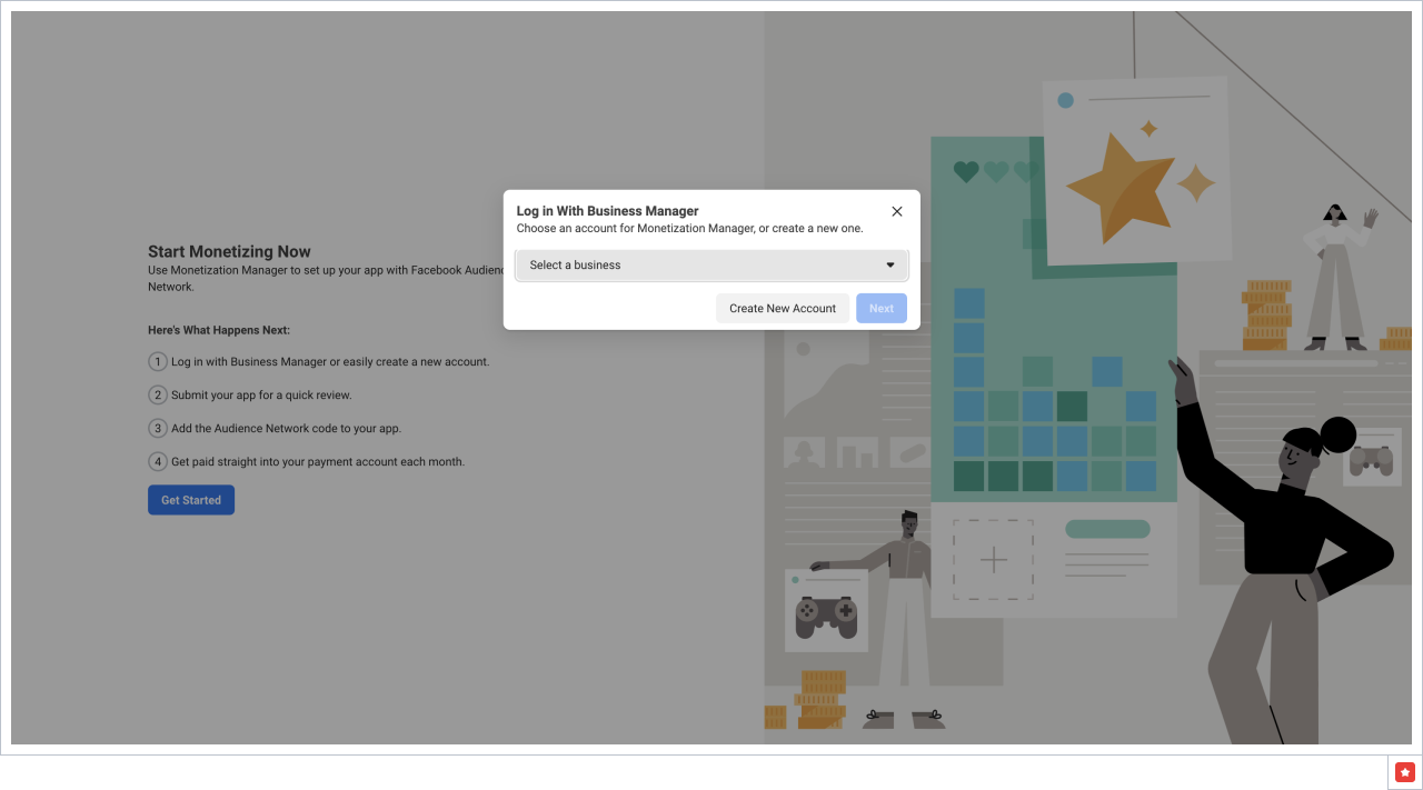 Fill in your personal information and create a Meta account. After this, you can log in and continue linking your Meta account to Appodeal.