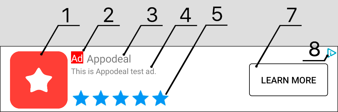 Appodeal предоставляет 4 варианта реализации макета нативной рекламы 3 шаблона + ваша кастомная реализация Все они наследуются от одного и того же класса NativeAdView.