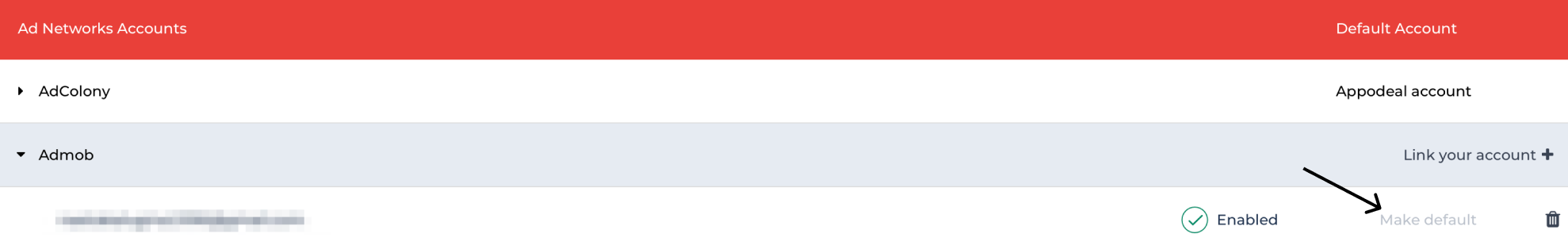 Вы можете назначить любой аккаунт рекламной сети в качестве аккаунта по умолчанию, и он будет использоваться для всех новых приложений.